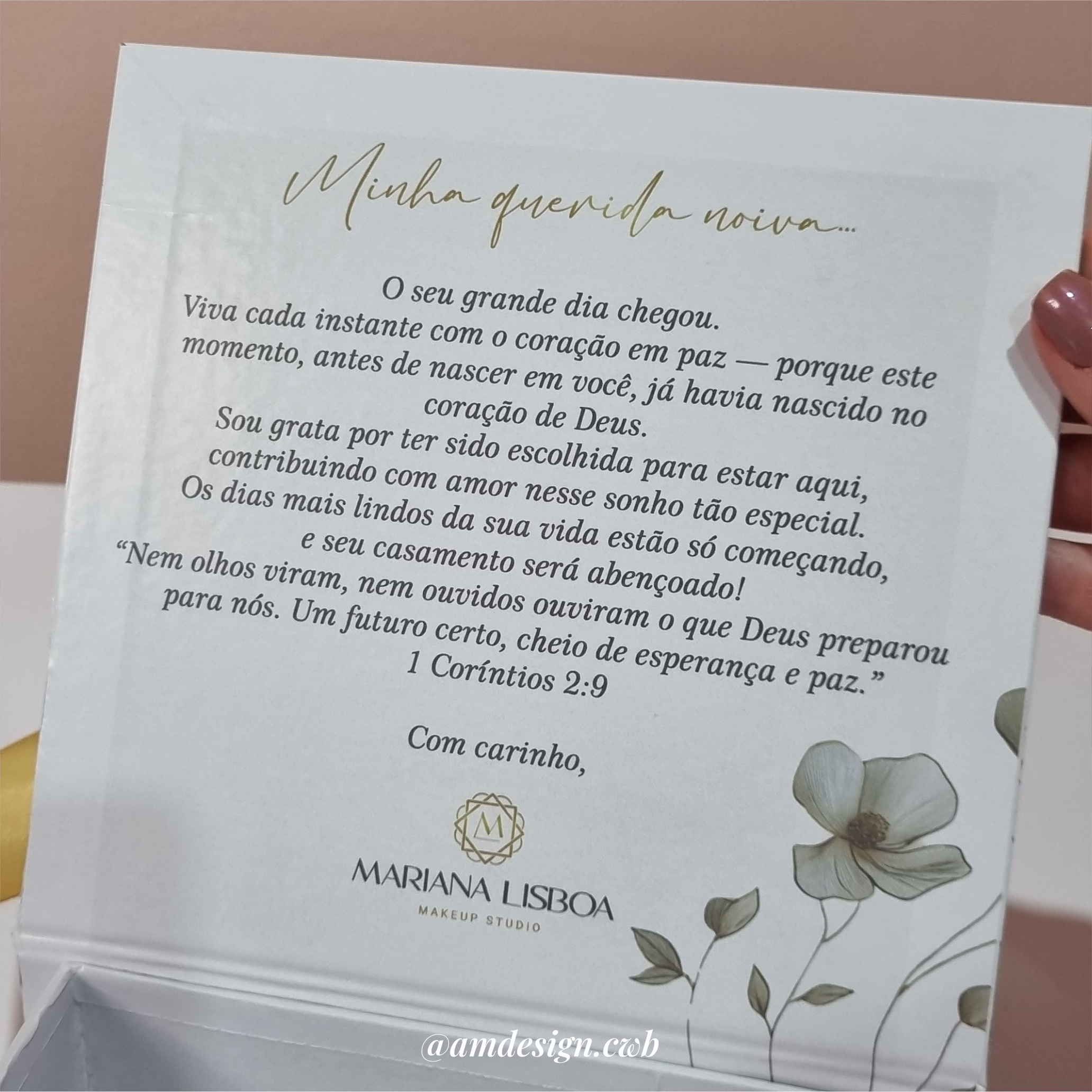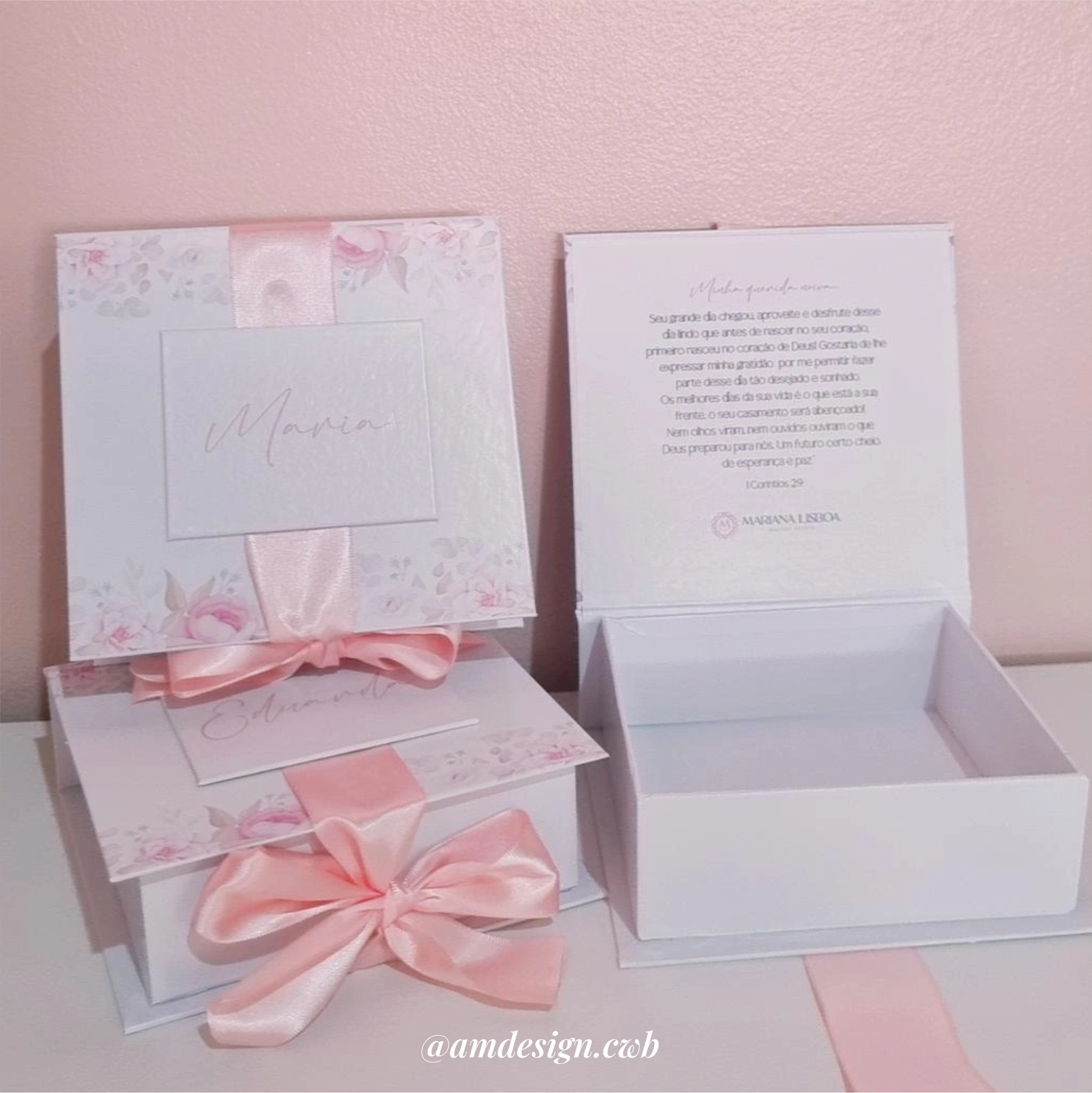♡ Acabamento: Papel horlle 1.9mm, ad. extrafosco e fita de cetim