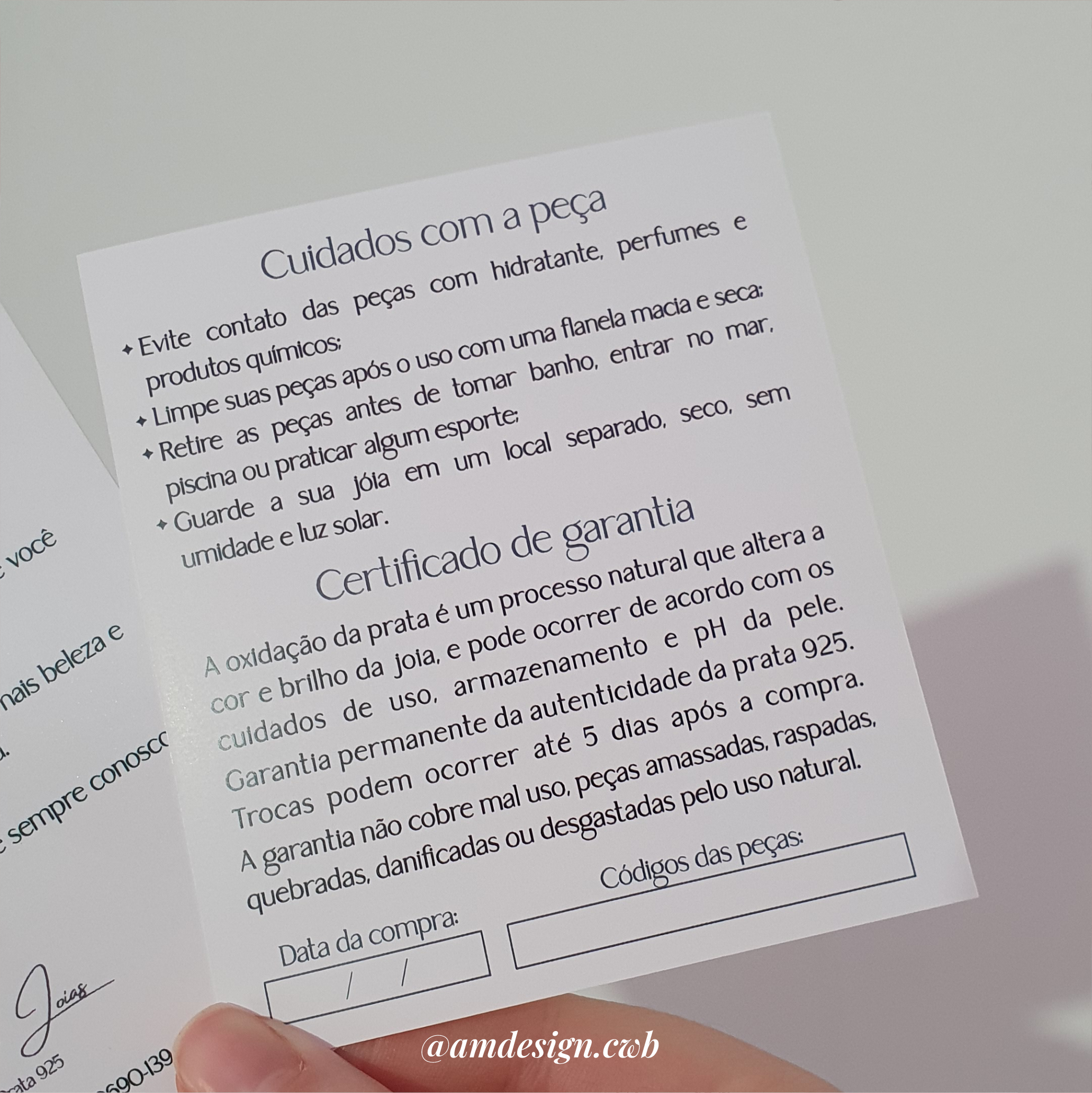 Cartão de Garantia 9x10cm | Verniz total frente